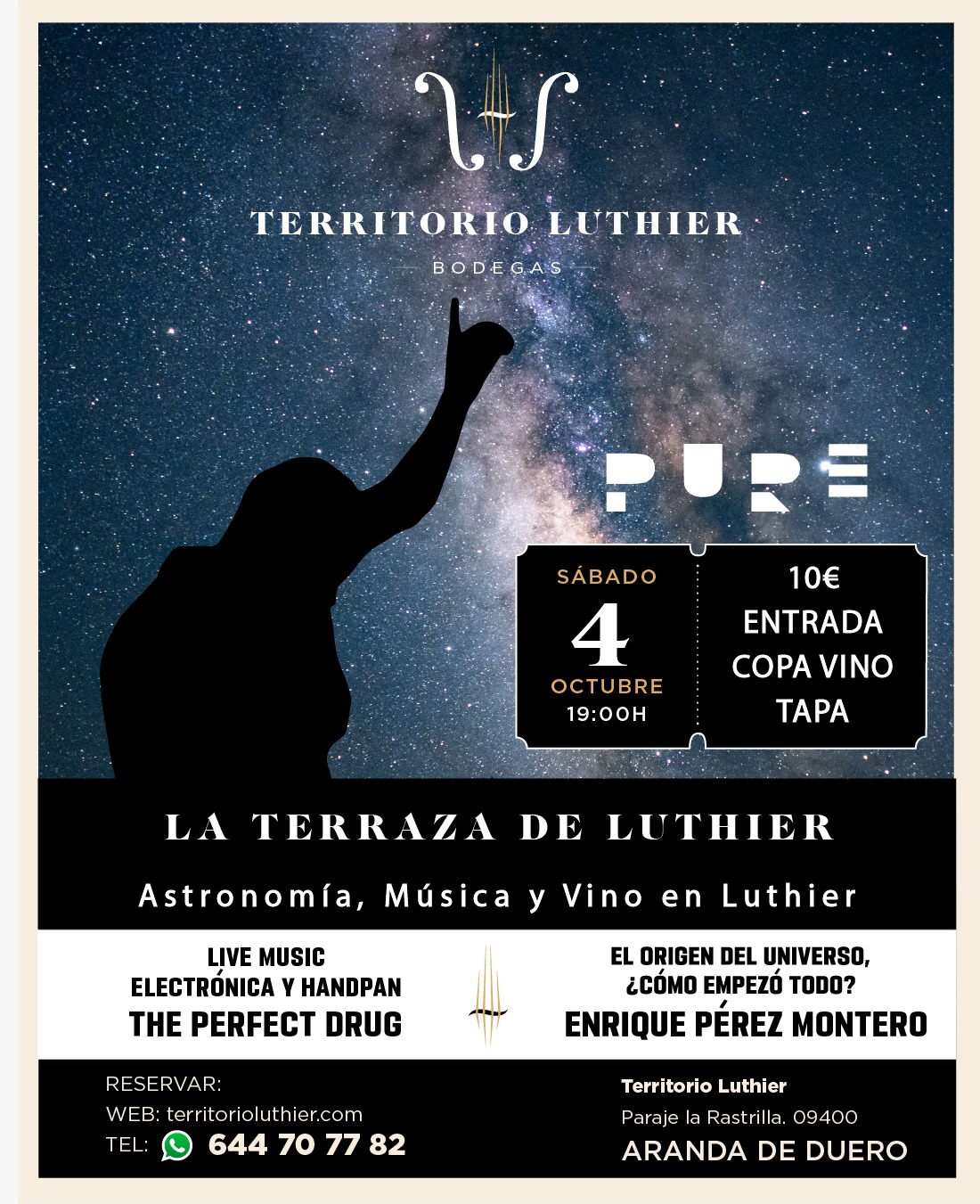 Entrada anticipada 10€ incluye visita bodega, charla astronomía, música electrónica LIVE y handpan con THE PERFECT DRUG, una copa LARA O y tapa